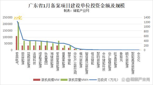 從1月廣東儲能備案項目建設單位來看,總投資額超83億。其中,索英電氣2個項目總投資金額高達22億元,總規(guī)模為600MW/1200MWh;廣訊力神總投資金額最少,為27.84萬元,規(guī)模為0.1MW/0.232MWh;當然,在這些建設單位中像協(xié)鑫、恒運儲能、皇鼎儲能都是經(jīng)常出現(xiàn)的企業(yè)。