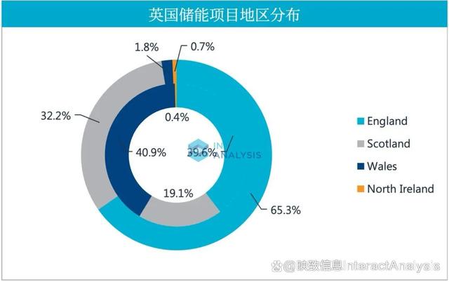 從地域分布看,威爾士、英格蘭當(dāng)前儲能裝機(jī)量最高,均超過2GW,分別占41%及40%。其中威爾士的儲能以抽水蓄能為主,容量占比超過98%,而英格蘭的在運(yùn)項(xiàng)目均為新型儲能。在英格蘭的九個(gè)行政大區(qū)中,儲能項(xiàng)目部署相對集中在英格蘭東南地區(qū)。