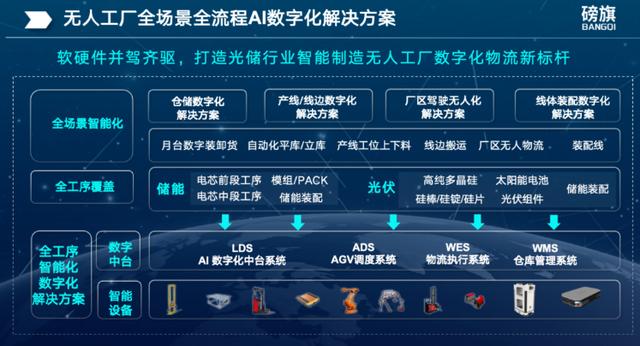 在此靠山下,磅旗科技踴躍摸索創(chuàng)新,使用構(gòu)建無人工場AI數(shù)字化,打造了自立可控的“軟件+硬件+數(shù)據(jù)+算法”云管端邊一體化處理方案,推出多品類AGV/機械人夾雜調(diào)理系統(tǒng)ADS、企業(yè)級無人工場數(shù)字中臺系統(tǒng)LDS,可能助力各AGV實現(xiàn)數(shù)據(jù)互通、協(xié)同功課,買通各工序過程的系統(tǒng)卡點和設(shè)施盲點,賦能儲能產(chǎn)業(yè)智能制作數(shù)字化周全晉級。