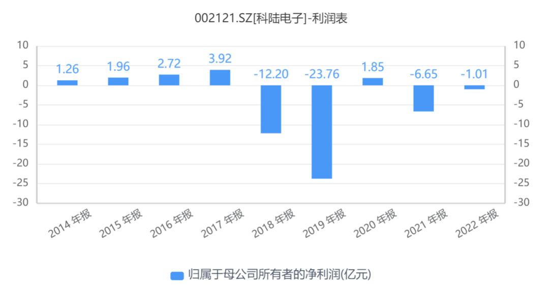 探究科陸電子的發(fā)展歷程,自1996年成立以來,在2018年前一直呈現(xiàn)上升趨勢。從2007年上市初期不足4億元的營業(yè)收入,到2017年躍升至近44億元,凈利潤也從0.68億元攀升至4.59億元,然而,在2018年和2019年,因擔(dān)保暴雷、資產(chǎn)減值等事項,合計虧損高達(dá)約36億元,致使過去數(shù)十年的盈利化為烏有,甚至一度瀕臨退市的風(fēng)險。
