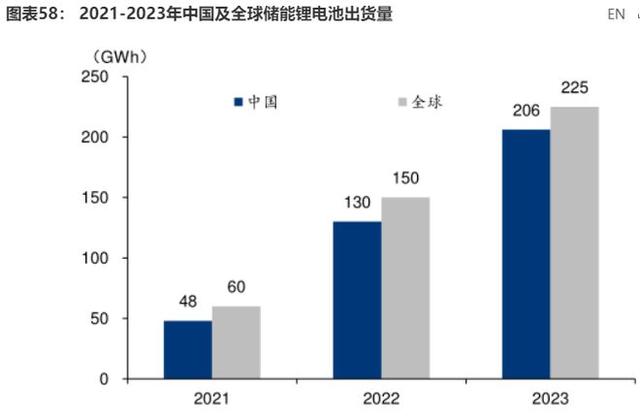 首先,鋰電池儲(chǔ)能在新型儲(chǔ)能裝機(jī)中占據(jù)絕對(duì)主導(dǎo)地位,將在較長(zhǎng)時(shí)期作為儲(chǔ)能建設(shè)的主力,因此,儲(chǔ)能也成為鋰電池廠商兵家必爭(zhēng)之地。根據(jù)GGII,2023年全球儲(chǔ)能鋰電池出貨225GWh,同比增長(zhǎng)50%,其中我國(guó)儲(chǔ)能鋰電池出貨206GWh,同比增長(zhǎng)58%。國(guó)內(nèi)企業(yè)出貨在全球占比由2022年的86.7%提升至2023年的91.6%,寧德時(shí)代、比亞迪、億緯鋰能、瑞浦蘭鈞、海辰儲(chǔ)能等企業(yè)出貨領(lǐng)跑行業(yè)。