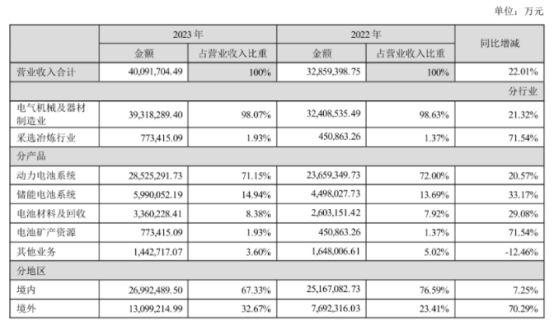 其次,通過觀察各鋰電企業(yè)2023年年度報(bào)告和業(yè)績(jī),多家企業(yè)業(yè)績(jī)?nèi)ツ暝鲩L(zhǎng)明顯放緩,而儲(chǔ)能業(yè)務(wù)增長(zhǎng)迅猛,有望成為第二增長(zhǎng)點(diǎn)。寧德時(shí)代年報(bào)顯示,2023年寧德時(shí)代在儲(chǔ)能電池系統(tǒng)業(yè)務(wù)同比增長(zhǎng)33.17%,是除動(dòng)力電池系統(tǒng)產(chǎn)品以外的營(yíng)收最高的產(chǎn)品類目。此外,欣旺達(dá)年報(bào)數(shù)據(jù)也顯示,儲(chǔ)能系統(tǒng)類業(yè)務(wù)實(shí)現(xiàn)了144%的增長(zhǎng)。事實(shí)上,頭部企業(yè)去年的年報(bào)或多或少都有受到儲(chǔ)能業(yè)務(wù)增長(zhǎng)的影響。