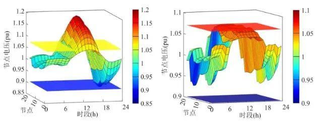 圖3 臺區(qū)配儲前后節(jié)點(diǎn)電壓變化