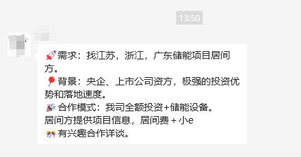 新能源產(chǎn)業(yè)家留意到,在行業(yè)社群里,經(jīng)常有人喊話尋找項(xiàng)目居間人。