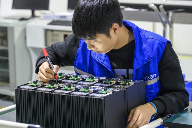 工作人員對儲能產(chǎn)品進(jìn)行性能檢測。(寧海宣傳部供圖)