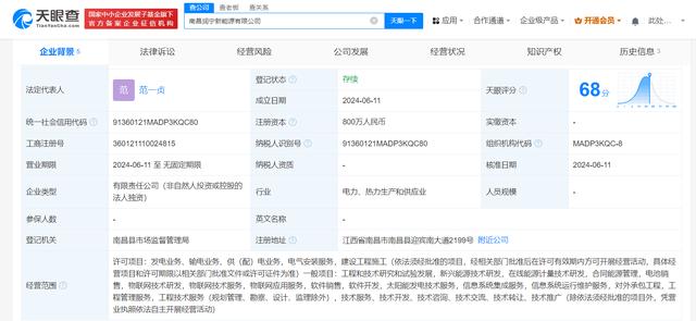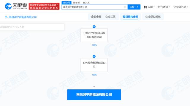 近日,南昌潤寧新能源有限公司成立,法定代表人為范一貞,注冊(cè)資本800萬人民幣,經(jīng)營范圍含工程和技術(shù)研究和試驗(yàn)發(fā)展、新興能源技術(shù)研發(fā)、在線能源計(jì)量技術(shù)研發(fā)、合同能源管理、電池銷售等。股權(quán)全景穿透圖顯示,該公司由時(shí)代綠色能源有限公司全資持股,后者為寧德時(shí)代(300750)全資子公司。