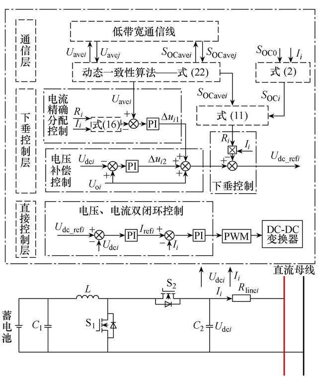 他們指出,以改變下垂系數(shù)為基礎(chǔ),通過前期控制因子調(diào)節(jié)系統(tǒng)最大輸出功率,后期加速因子放大均衡后期荷電狀態(tài)的差值,能夠達(dá)到加快荷電狀態(tài)均衡的目的。另外,引入容量權(quán)重因子,合理分配不同容量儲(chǔ)能單元的功率,使其趨于容量比,旨在有效彌補(bǔ)各儲(chǔ)能單元間的容量差異,有助于確保各個(gè)儲(chǔ)能單元在充電和放電過程中的合理參與,提高系統(tǒng)的整體效能和使用壽命。