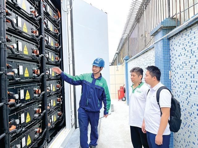工作人員介紹眾儲(chǔ)格林精密儲(chǔ)能電站。惠州日?qǐng)?bào)記者謝菁菁 攝