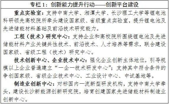 充分發(fā)揮長株潭國家自主創(chuàng)新示范區(qū)、湘江新區(qū)、湖南自貿(mào)區(qū)等國家級平臺優(yōu)勢,支持長沙加快引進動力電池、儲能電池關(guān)鍵材料及電芯電池高端制造等產(chǎn)業(yè)鏈關(guān)鍵環(huán)節(jié)項目和上下游優(yōu)質(zhì)企業(yè),加快產(chǎn)業(yè)創(chuàng)新平臺、中試測試平臺、檢驗檢測平臺建設(shè),打造全球先進儲能材料研發(fā)中心城市,株洲、湘潭配套建設(shè)一批電池正負極、電芯電池、電池回收利用等項目,強化三市產(chǎn)業(yè)協(xié)同效應,引領(lǐng)和帶動全省鋰電池及先進儲能材料產(chǎn)業(yè)高質(zhì)量發(fā)展。