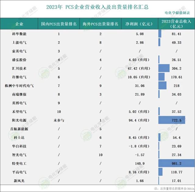 據(jù)CNESA數(shù)據(jù),2023年度,國內市場中,儲能PCS出貨量排名前十位的中國企業(yè),依次為:科華數(shù)能、上能電氣、索英電氣、盛弘股份、匯川技術、許繼電氣、株洲中車時代電氣、南瑞繼保、英博電氣和禾望電氣。