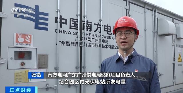 南方電網(wǎng)廣東廣州供電局儲能項(xiàng)目負(fù)責(zé)人 張鍇:結(jié)合園區(qū)內(nèi)光伏電站所發(fā)電量,在用電低谷時將電能儲存在電池中,用電高峰時釋放電能,實(shí)現(xiàn)“每日兩充兩放”。同時還可以將園區(qū)屋頂分布式光伏所發(fā)電能,合理調(diào)配至新能源汽車產(chǎn)線中。