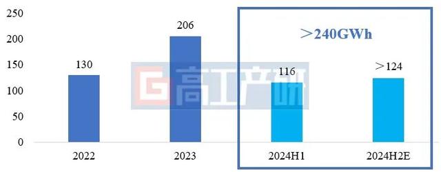 2022-2024年中國(guó)儲(chǔ)能鋰電池出貨量及預(yù)測(cè)(GWh)