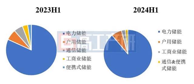 2023H1-2024H1中國(guó)儲(chǔ)能鋰電池出貨量(按細(xì)分領(lǐng)域,GWh)