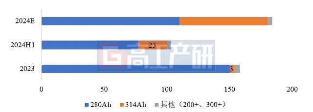 2023年下半年以來(lái),企業(yè)加速切換314Ah產(chǎn)線,部分企業(yè)已將280Ah作為庫(kù)存拋售。截至2024年上半年,314Ah有效產(chǎn)能已達(dá)40GWh。