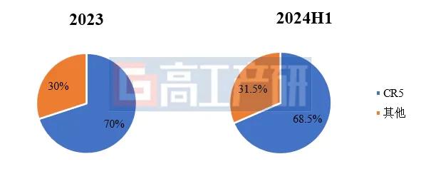 2023-2024H1國(guó)內(nèi)儲(chǔ)能鋰電池出貨CR5格局變化(%)