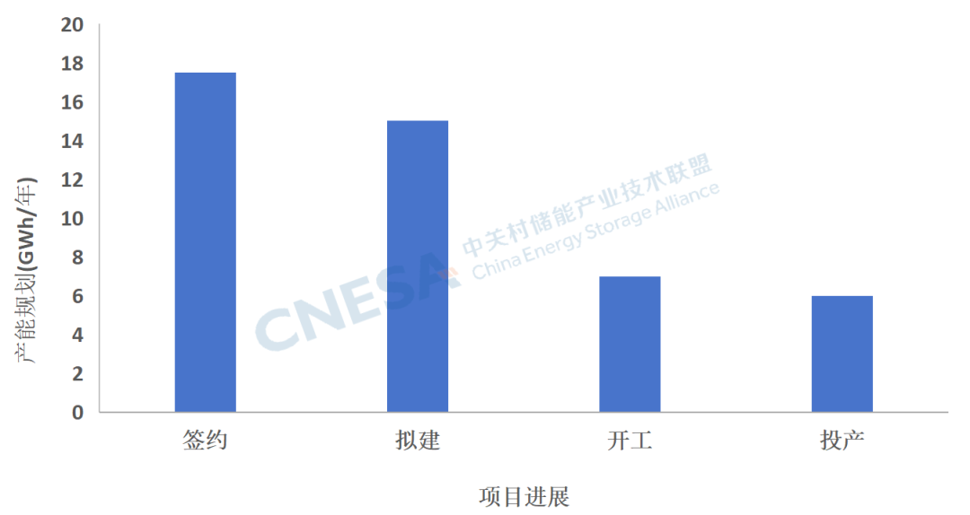 6月份新增產能(含簽約、擬建、開工和投產)45.5GWh,投資額超過250億元人民幣。