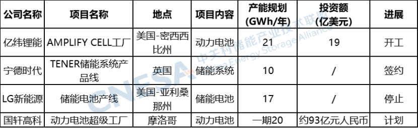此外,本月,億緯鋰能、寧德時代、國軒高科等國內頭部電池企業(yè)在海外的產能布局如火如荼進行中,相繼宣布了其海外電池和儲能系統(tǒng)的規(guī)劃情況。