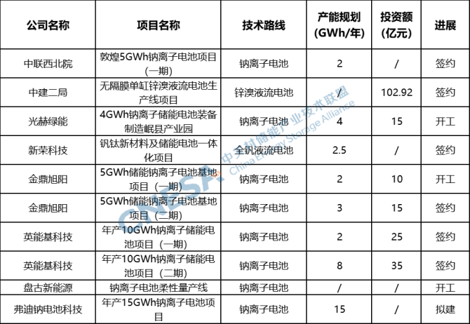 雖然從產能規(guī)劃上看,與上月份相比基本保持穩(wěn)定;但從技術路線來看,鋰電池規(guī)劃項目大幅減少,其中,國際實業(yè)子公司江蘇中大桿塔科技發(fā)展有限公司在本月宣布終止投建4GWh磷酸鐵鋰電池pack集成產線;鈉離子電池以及液流電池等非鋰技術產能規(guī)劃項目本月正在快速推進。
