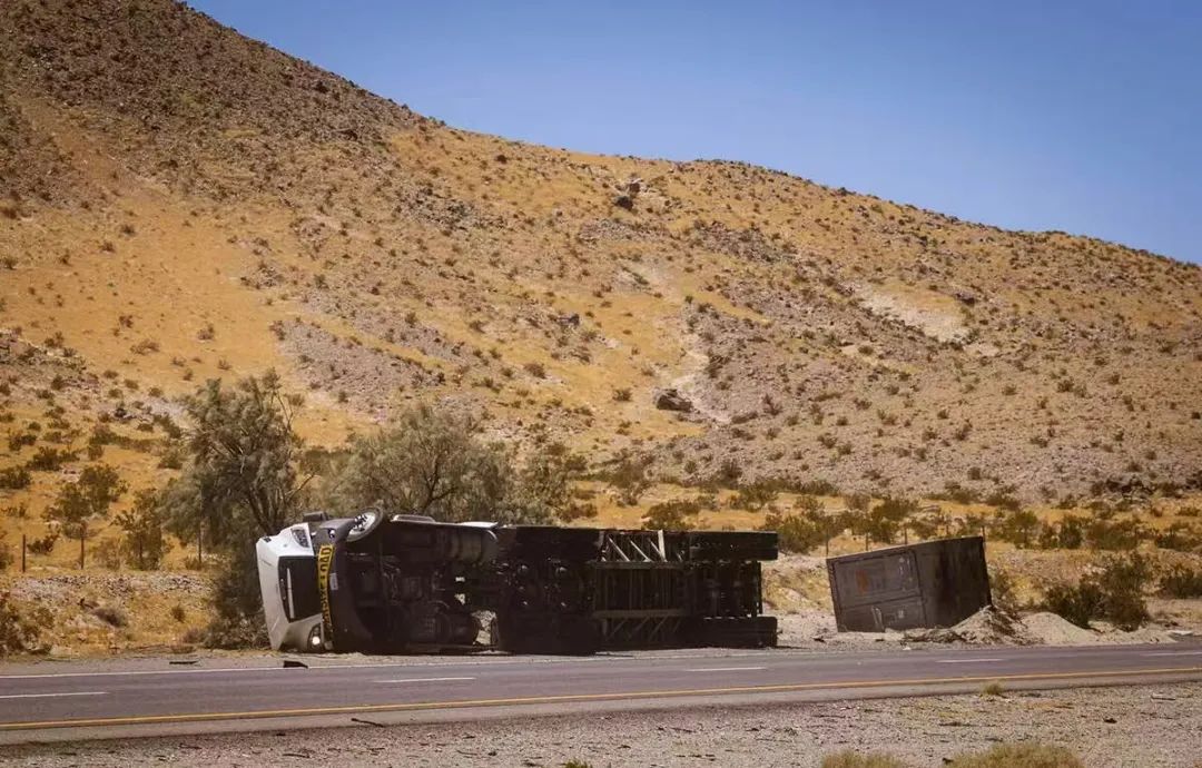 據(jù)了解,事故發(fā)生于周五早上6點左右,事發(fā)地點位于巴斯托(Barstow)和貝克(Baker)之間I-15州際公路的Afton Road出口附近。