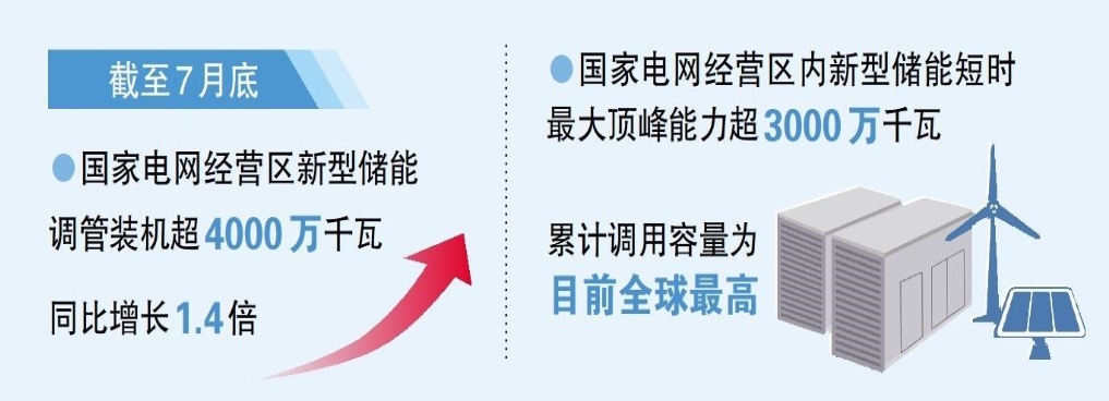 在國(guó)家政策和技術(shù)創(chuàng)新驅(qū)動(dòng)下,我國(guó)新型儲(chǔ)能呈現(xiàn)規(guī)?;l(fā)展趨勢(shì)。截至7月底,國(guó)家電網(wǎng)有限公司經(jīng)營(yíng)區(qū)內(nèi)新型儲(chǔ)能調(diào)管裝機(jī)超4000萬(wàn)千瓦,同比增長(zhǎng)1.4倍。公司做好新型儲(chǔ)能并網(wǎng)及調(diào)度運(yùn)行,服務(wù)新型儲(chǔ)能高質(zhì)量發(fā)展。