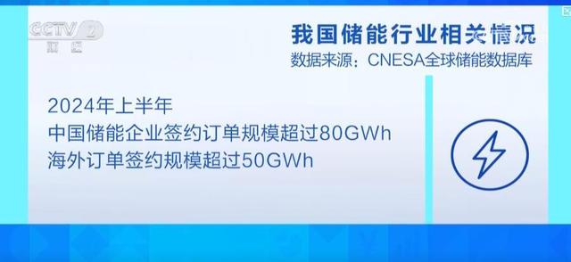 除了戶用儲能領(lǐng)域,海外大型儲能項目今年也表現(xiàn)亮眼。據(jù)CNESA全球儲能數(shù)據(jù)庫不完全統(tǒng)計,2024年上半年,中國儲能企業(yè)簽約訂單規(guī)模超過80GWh,其中海外訂單簽約規(guī)模超過50GWh。