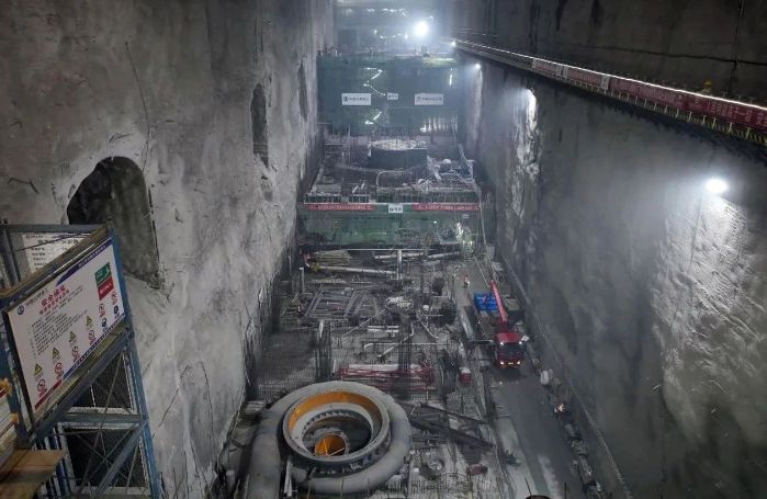天臺(tái)抽蓄電站主廠(chǎng)房1號(hào)機(jī)組從上至下分為發(fā)電機(jī)層、中間層、水輪機(jī)層、蝸殼層、尾水管層。自2023年12月15日主廠(chǎng)房1號(hào)機(jī)組開(kāi)挖完成交面,至2024年9月29日主廠(chǎng)房1號(hào)機(jī)組順利封頂,歷時(shí)九個(gè)半月。