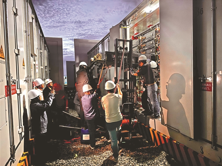 “這項(xiàng)紀(jì)錄的誕生,得益于高壓直掛儲(chǔ)能技術(shù)極大地簡(jiǎn)化了大型儲(chǔ)能電站的構(gòu)建方案。”郝卓龍算了一筆賬,建設(shè)一座150兆瓦/600兆瓦時(shí)儲(chǔ)能電站,如采用低壓儲(chǔ)能技術(shù),需85—800臺(tái)功率逆變?cè)O(shè)備進(jìn)行并聯(lián),不僅系統(tǒng)復(fù)雜程度高,且存在低頻或?qū)掝l振蕩風(fēng)險(xiǎn)。要達(dá)到同樣容量,只需要6套采用高壓直掛儲(chǔ)能技術(shù)的設(shè)備,建設(shè)速度自然較快。