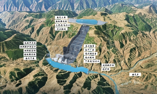 芒康熱巴抽水蓄能電站位于西藏自治區(qū)昌都市芒康縣,距昌都的直線距離約165千米。上水庫位于瀾滄江左岸二級支流達(dá)其曲右岸尼吉拉臺地上,通過開挖筑壩形成,流域面積1.06平方千米;下水庫位于達(dá)其曲干流上游河段,利用攔河壩和攔沙壩之間的天然地形成庫,下水庫攔沙壩控制流域面積328平方千米、攔沙壩~攔河壩區(qū)間流域面積4.75平方千米。電站連續(xù)滿發(fā)小時數(shù)6小時,初擬額定水頭702米。樞紐工程主要由上水庫、下水庫、地下輸水發(fā)電系統(tǒng)、地面開關(guān)站和補(bǔ)水系統(tǒng)等建筑物組成。上水庫采用瀝青混凝土面板堆石壩,最大壩高66米,采用全庫盆瀝青混凝土面板防滲方案;下水庫攔河壩采用鋼筋混凝土面板堆石壩,最大壩高105米;下水庫攔沙壩采用碾壓混凝土重力壩,最大壩高60.5米;輸水線路水平距離約2940米,距高比4.24。從日曲左岸取水,永久補(bǔ)水線路采用地下埋管的布置方式,補(bǔ)水線路長約2.12千米。