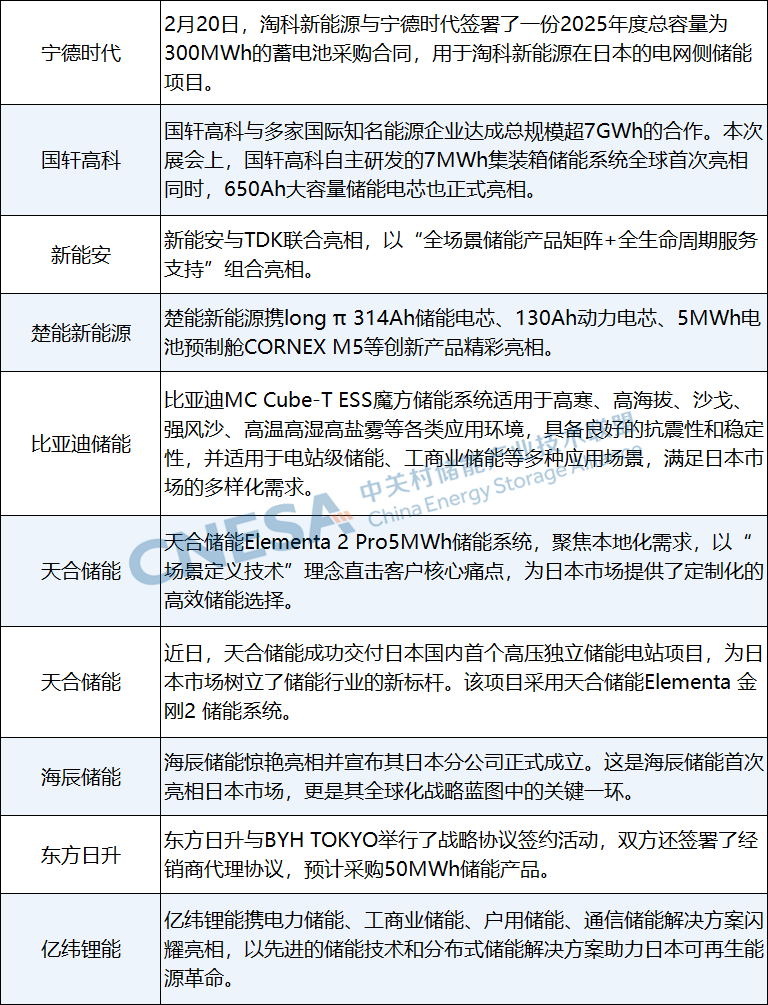 日本正加速可再生能源與儲能技術(shù)應(yīng)用,但是日本獨特的地理環(huán)境、高密度的城市環(huán)境以及嚴(yán)苛的防災(zāi)標(biāo)準(zhǔn)對儲能系統(tǒng)的安全性、可靠性、經(jīng)濟(jì)性提出更高要求。中國儲能企業(yè)針對當(dāng)?shù)靥攸c,推出因地制宜的解決方案。在近期舉辦的日本展會期間,寧德時代、國軒高科、東方日升等紛紛簽約海外大單。