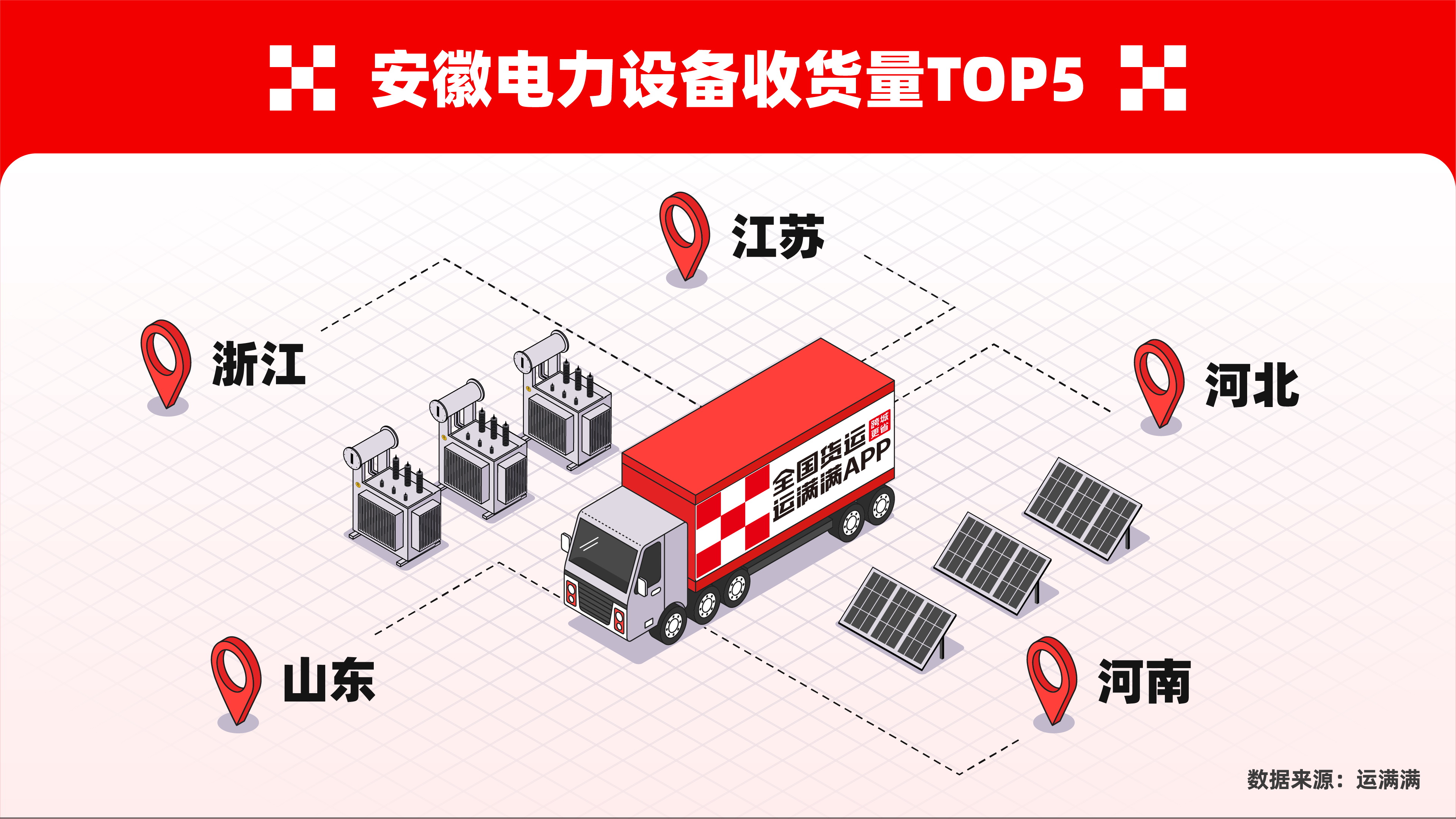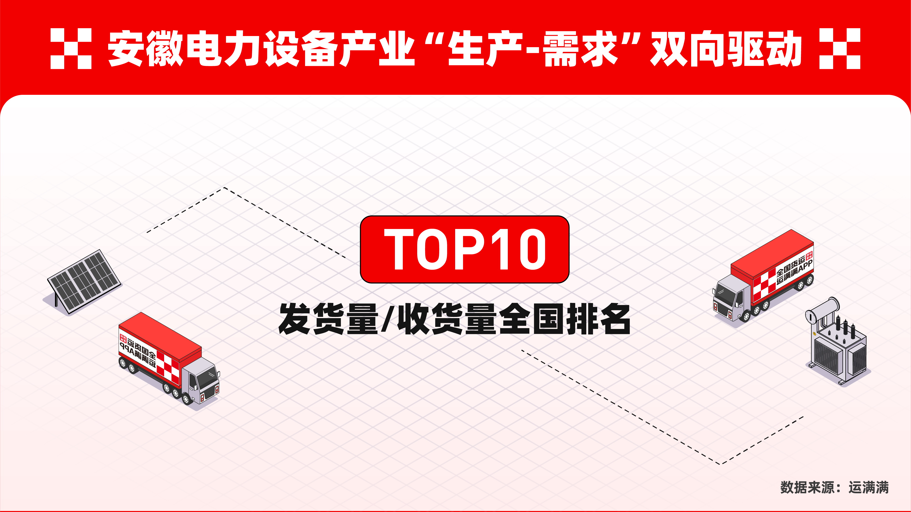 值得一提的是,運(yùn)滿滿數(shù)據(jù)顯示,安徽不僅是電力設(shè)備輸出大省,在需求端同樣表現(xiàn)強(qiáng)勁,全年電力設(shè)備收貨量排名全國第6,呈現(xiàn)出 “生產(chǎn)-需求” 雙向驅(qū)動的產(chǎn)業(yè)特性。未來,隨著安徽電力設(shè)備產(chǎn)業(yè)向高端化、綠色化邁進(jìn),對專業(yè)化運(yùn)輸?shù)男枨髮⑦M(jìn)一步增長。例如,海上風(fēng)電設(shè)備、超高壓輸電裝置等大件貨物運(yùn)輸,亟需更精細(xì)的運(yùn)力匹配方案。對此,運(yùn)滿滿方面表示,將深化與制造業(yè)的數(shù)據(jù)聯(lián)動,推動供應(yīng)鏈全鏈條數(shù)字化。
