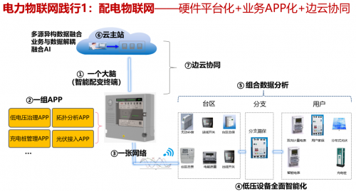 配電物聯(lián)網(wǎng):基于“配電網(wǎng)+物聯(lián)網(wǎng)”的融合理念,采用“軟件定義終端”和開放邊緣計算架構(gòu),實現(xiàn)“硬件平臺化+業(yè)務APP化+邊云協(xié)同”,滿足配電網(wǎng)面臨的海量終端即插即用接入、新業(yè)務靈活擴展、多元異構(gòu)數(shù)據(jù)融合、新業(yè)務快速上線等需求,有力支撐停電故障研判、配電設備狀態(tài)管控、電動汽車充電有序控制等業(yè)務發(fā)展,使配電網(wǎng)具備更強的資源配置能力和更快的需求響應速度。