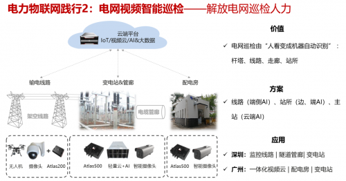 電網(wǎng)視頻智能巡檢:應用基于華為昇騰AI芯片的Atlas系列產(chǎn)品方案,匹配桿塔、管廊、站所不同場景,通過對設備異常、環(huán)境風險、人員違規(guī)等的AI識別,將風險信息及時傳遞給視頻云中心,做到風險及時發(fā)現(xiàn),幫助客戶實現(xiàn)電網(wǎng)巡檢 “由人看變成機器自動識別”,解放電網(wǎng)巡檢人力,提高運維效率,有效保障電網(wǎng)的安全穩(wěn)定運行。