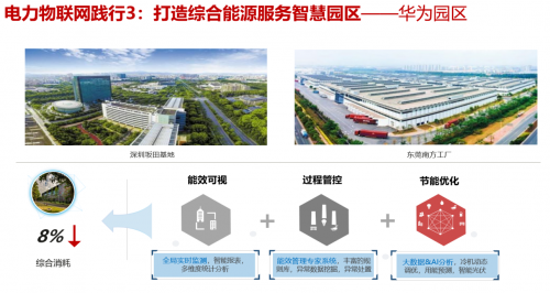 綜合能源服務智慧園區(qū):華為在深圳坂田基地和東莞南方工廠打造了基于綜合能源服務的智慧園區(qū),實現(xiàn)園區(qū)能效透明可視,能耗漏洞有效挖掘,能耗異常自動告警。通過大數(shù)據(jù)&AI技術的使用,可輸出系統(tǒng)運行優(yōu)化建議,包括對空調(diào)冷機動態(tài)調(diào)優(yōu),光伏智能并網(wǎng),基于用能預測的精準購電等,優(yōu)化多能源的綜合配置能力;