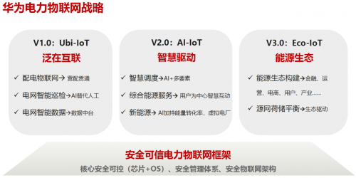 華為中國企業(yè)解決方案CTO董偉嗣表示:“電力物聯(lián)網(wǎng)是電網(wǎng)數(shù)字化轉(zhuǎn)型的引擎,其業(yè)務實質(zhì)是實現(xiàn)電網(wǎng)數(shù)字化、運營數(shù)字化和以客戶為中心的綜合能源服務,并推動能源生態(tài)的轉(zhuǎn)變、優(yōu)化源網(wǎng)荷儲平衡。華為電力物聯(lián)網(wǎng)戰(zhàn)略目標是:打造安全可信電力物聯(lián)網(wǎng)框架,并結(jié)合電力業(yè)務場景,以泛在互聯(lián)Ubi-IoT、智慧驅(qū)動AI-IoT和能源生態(tài)Eco-IoT三個階段進行發(fā)展演進。