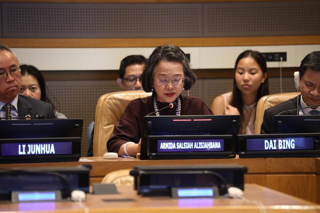 當地時間7月13日,聯(lián)合國可持續(xù)發(fā)展高級別政治論壇能源主題邊會在紐約聯(lián)合國總部舉行,聯(lián)合國副秘書長兼聯(lián)合國亞洲及太平洋經濟社會委員會執(zhí)行秘書阿米達·阿利斯夏巴納在會上講話。(合作組織供圖)