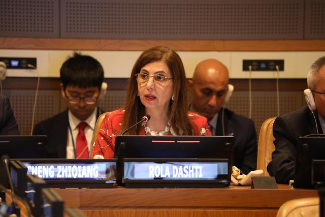 聯(lián)合國副秘書長兼聯(lián)合國西亞經社會執(zhí)行秘書羅拉·達什提在主題邊會上講話。(合作組織供圖)