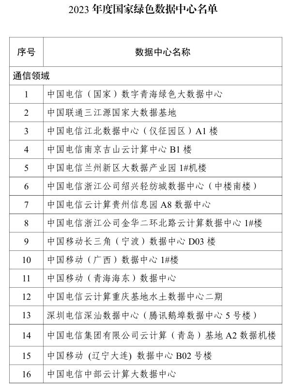 附件:2023年度國家綠色數(shù)據(jù)中心名單