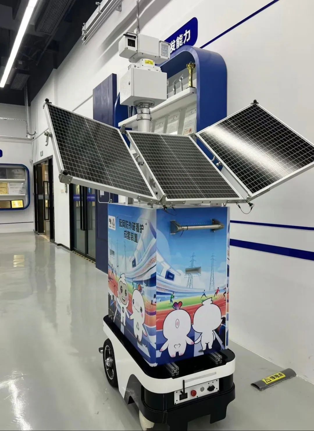▲南方電網(wǎng)廣東廣州供電局以科技手段為十五運(yùn)會(huì)織密智慧保電網(wǎng)絡(luò),防外破移動(dòng)監(jiān)測(cè)裝置為賽事場(chǎng)館安穩(wěn)用電保駕護(hù)航。(廣州供電局 供圖)