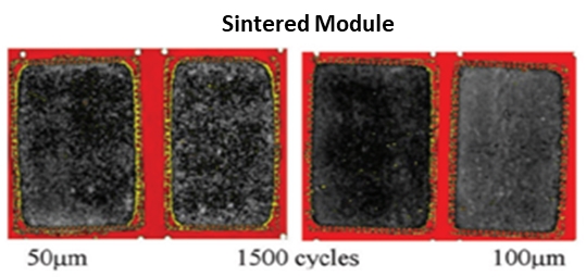 傳統(tǒng)焊料在高溫波動及高功率循環(huán)條件下易產(chǎn)生疲勞效應(yīng),導(dǎo)致連接層失效,從而影響模塊的使用壽命。燒結(jié)銀技術(shù),通過提高連接層的強度和穩(wěn)定性,有效延長了功率模塊的使用壽命。