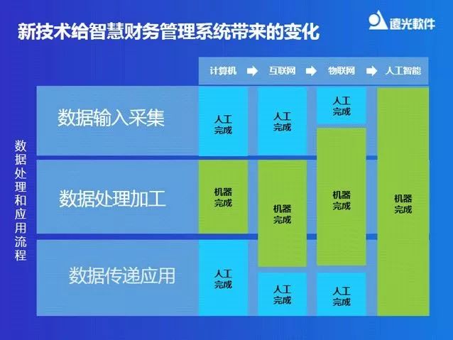 新技術(shù)會(huì)令智慧財(cái)務(wù)管理系統(tǒng)帶來(lái)哪些變化?陳婷表示改變主要體現(xiàn)在三個(gè)階段,即數(shù)據(jù)的輸入采集階段、數(shù)據(jù)的處理加工階段和數(shù)據(jù)的傳遞應(yīng)用階段。