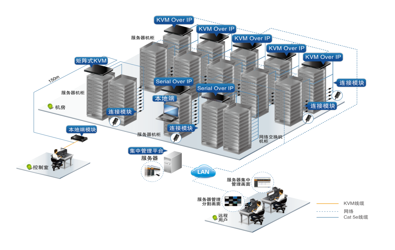 針對(duì)電網(wǎng)信通中心數(shù)量龐大、分散度高、IT設(shè)備復(fù)雜,各分站點(diǎn)IT維護(hù)人員對(duì)IT設(shè)備進(jìn)行監(jiān)管人力成本高、故障排查難度大等業(yè)務(wù)痛點(diǎn),ATEN智能化連接解決方案可對(duì)服務(wù)器、網(wǎng)絡(luò)設(shè)備、電源、監(jiān)控設(shè)備等全部IT基礎(chǔ)設(shè)施進(jìn)行遠(yuǎn)程集中管控,實(shí)現(xiàn)一體化集中管理平臺(tái)。同時(shí)對(duì)各類維護(hù)操作進(jìn)行全面的記錄,以便進(jìn)行監(jiān)控、回溯,以及帶外管理通道,可方便維護(hù)人員在第一時(shí)間實(shí)現(xiàn)遠(yuǎn)程故障排查、恢復(fù)等智能管理優(yōu)勢(shì),多個(gè)智慧連接解決方案協(xié)同作用,幫助電力企業(yè)實(shí)現(xiàn)智慧化轉(zhuǎn)型。
