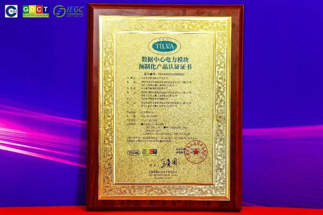 業(yè)界首個(gè)“數(shù)據(jù)中心電力模塊預(yù)制化產(chǎn)品認(rèn)證”證書(shū)
