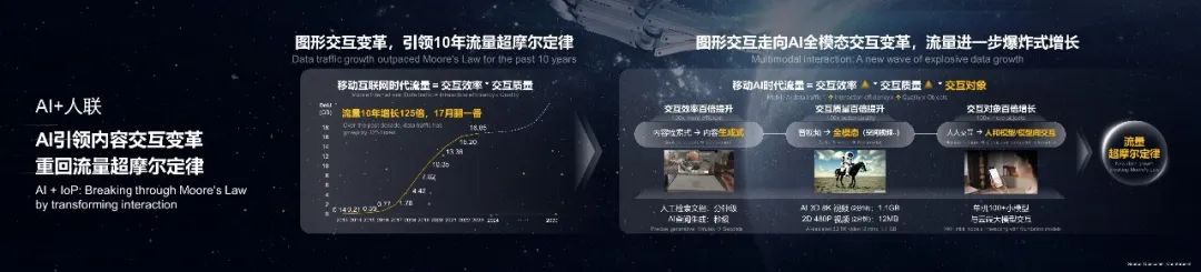 第一,圖形交互變革在過去10年推動了移動流量快速增長,DoU在過去十年增長120多倍,平均每17個月翻一番,流量增速超摩爾定律。我們認為,移動AI時代將引領內容交互的再次變革,隨著生成式內容將會取代檢索式成為主流,交互效率百倍提升;隨著AIGC將推動3D、空間視頻等全模態(tài)內容生產,交互信息量百倍提升;隨著終端將內置大量本地小模型與云端大模型實時協(xié)同,交互對象百倍提升。這將將促進移動流量爆炸式增長,重回流量超摩爾定律。