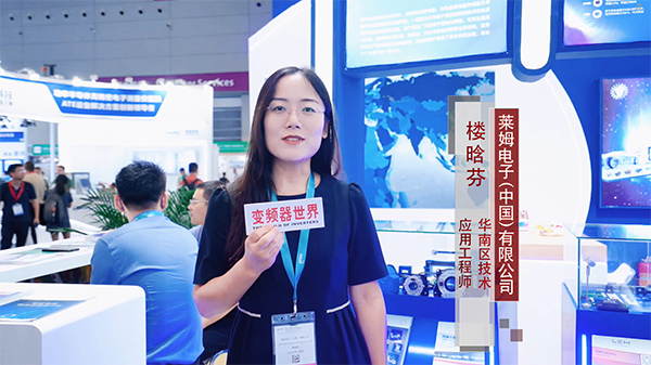 萊姆電子華南區(qū)FAE樓晗芬女士則接受了變頻器世界的視頻采訪,為大家詳細(xì)介紹了萊姆電子在本次展會中的產(chǎn)品。針對驅(qū)動焊接、鐵路軌交等傳統(tǒng)領(lǐng)域,樓工表示:“萊姆電子在傳統(tǒng)領(lǐng)域有高精度電流傳感器、開環(huán)霍爾和閉環(huán)霍爾,量程高達(dá)20,000A。”