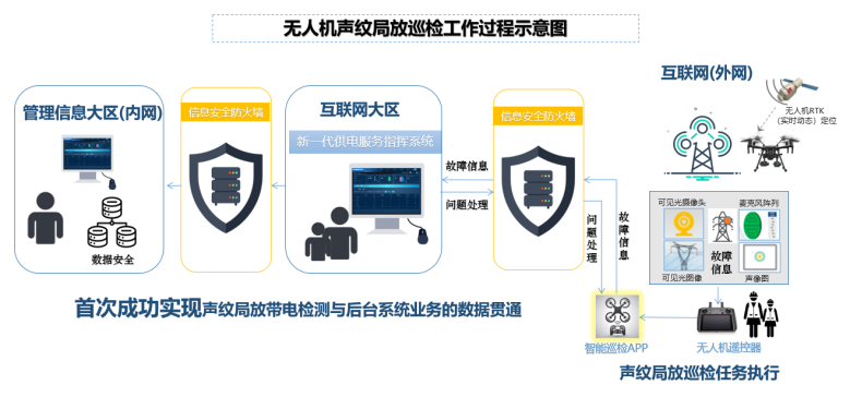 近日,博電新能與國網(wǎng)冀北電力有限公司開展互作,通過無人機掛載聲紋局放檢測設備,對相關配網(wǎng)線路進行聲紋局放帶電檢測,并借助聲紋巡檢APP將檢測實時現(xiàn)場畫面及巡檢缺陷數(shù)據(jù)上傳至供電服務指揮系統(tǒng),首次成功實現(xiàn)了聲紋局放帶電檢測與后臺系統(tǒng)業(yè)務的數(shù)據(jù)貫通。該技術融合“空、天、地、人”多組合狀態(tài)檢測手段,高度賦能電力系統(tǒng)狀態(tài)檢測及人工智能規(guī)模應用,其廣泛應用將有效助力電網(wǎng)數(shù)智化轉型。
