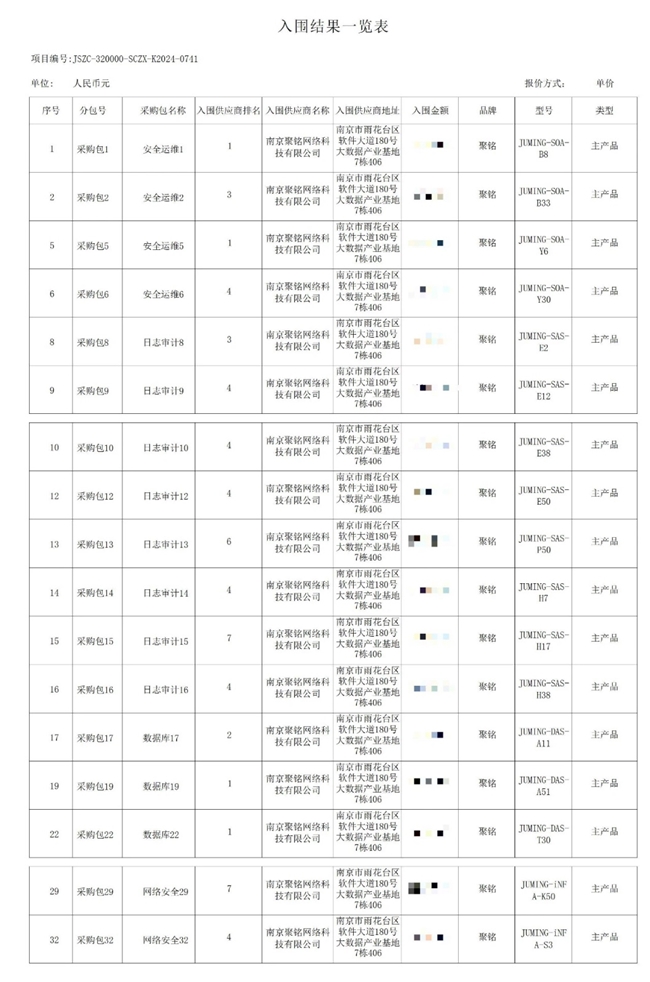 本網(wǎng)訊 近日,2025年度江蘇省黨政機(jī)關(guān)、事業(yè)單位及團(tuán)體組織信息安全設(shè)備框架協(xié)議采購項(xiàng)目入圍結(jié)果公布。聚銘網(wǎng)絡(luò)憑借自身專業(yè)實(shí)力和技術(shù)優(yōu)勢(shì)脫穎而出,成功入圍22個(gè)分包。