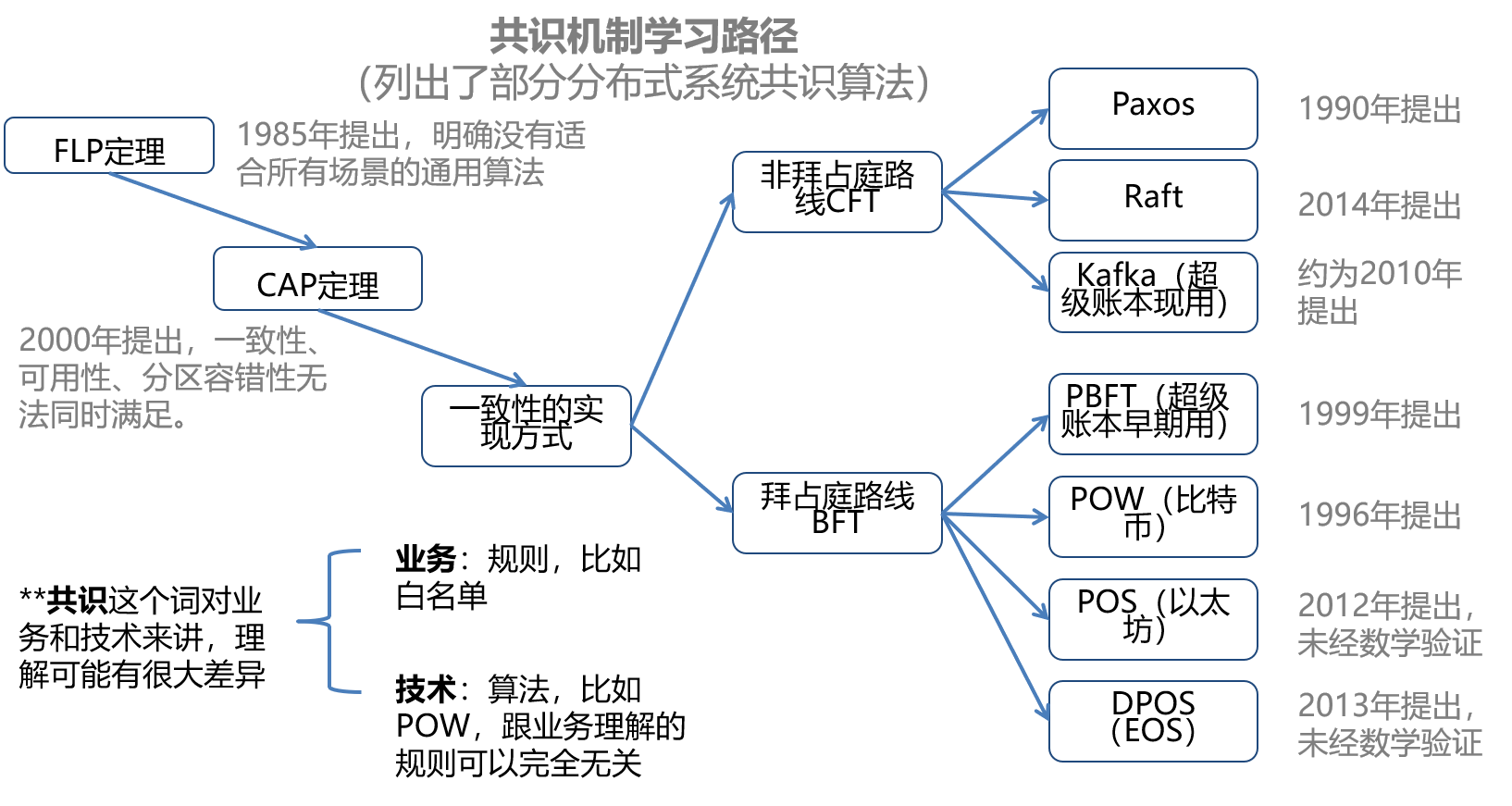 共識是區(qū)塊鏈中炒的很熱的概念,甚至?xí)尫羌夹g(shù)出身的同學(xué)覺得“共識”是區(qū)塊鏈發(fā)明的。我對共識了解不多,只是根據(jù)資料總結(jié)了一個共識的發(fā)展路徑或者說學(xué)習(xí)路徑供大家參考: