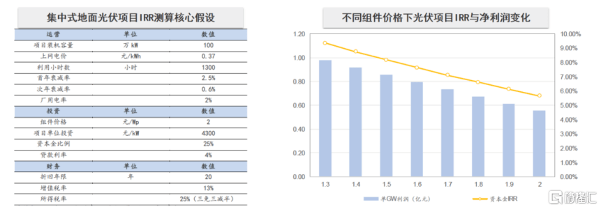 伴隨以核心原材料價(jià)格下行以及規(guī)模效應(yīng)下的成本持續(xù)下降,將導(dǎo)致新能源項(xiàng)目的收益率也會(huì)逐步提升。例如,下圖中的光伏項(xiàng)目的IRR(內(nèi)部收益率)預(yù)計(jì)從5.6%提高到7.6%,提高了2個(gè)百分點(diǎn)。隨著利潤(rùn)率的提高用于投資這方面,投資者就會(huì)更多的增加,由于規(guī)模集約效應(yīng),成本又會(huì)增加,是良性循環(huán)的一個(gè)機(jī)制。