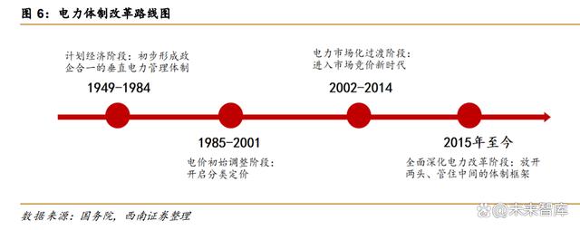 從我國(guó)電價(jià)政策機(jī)制發(fā)展歷程來(lái)看,我國(guó)電價(jià)政策機(jī)制發(fā)展歷程大致可以分成四個(gè)階段: 1)計(jì)劃經(jīng)濟(jì)階段(1949-1984 年):1950 年,我國(guó)成立電力行業(yè)管理局,初步形成以中央 領(lǐng)導(dǎo)為主、地方領(lǐng)導(dǎo)為補(bǔ)充的政企合一的垂直電力管理體制;2)電價(jià)初始調(diào)整階段 (1985-2001 年):1985 年,以國(guó)家經(jīng)濟(jì)委員會(huì)、國(guó)家計(jì)劃委員會(huì)、水利電力部、國(guó)家物價(jià) 局發(fā)布的《關(guān)于鼓勵(lì)集資辦電和實(shí)行多種電價(jià)的暫行規(guī)定》為標(biāo)志,開(kāi)啟分類定價(jià);3)電力 市場(chǎng)化過(guò)渡階段(2002-2014 年):2002 年國(guó)務(wù)院發(fā)布《電力體制改革方案》,標(biāo)志著我國(guó) 電力行業(yè)定價(jià)正式告別政府定價(jià),進(jìn)入市場(chǎng)競(jìng)價(jià)新時(shí)代。4)全面深化電力改革階段(2015 年至今):2015 年,中共中央國(guó)務(wù)院下發(fā)《關(guān)于進(jìn)一步深化電力體制改革的若干意見(jiàn)》(中發(fā) [2015]9 號(hào)),確定了“三放開(kāi)、一獨(dú)立、三強(qiáng)化"的改革基本路徑以及"放開(kāi)兩頭、管住中間" 的體制框架。 新一輪電力體制改革加速推進(jìn)。傳統(tǒng)電力系統(tǒng)調(diào)度模式為“源隨荷動(dòng)”,根據(jù)用電側(cè)來(lái) 調(diào)整電源側(cè)的發(fā)電量,新型電力系統(tǒng)下電源側(cè)發(fā)電量和負(fù)荷側(cè)用電量均不可控,加大了電力 調(diào)度難度。而目前電網(wǎng)調(diào)度方式主要是面向常規(guī)電源為主的計(jì)劃調(diào)度機(jī)制,電力體制改革隨 之深化。