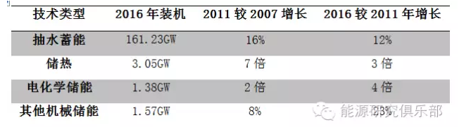 以2011年為分界點,前5年儲熱裝機(jī)增速最快,較2007年增加7倍,后5年化學(xué)儲能則成為發(fā)展最快的技術(shù),詳見表3。